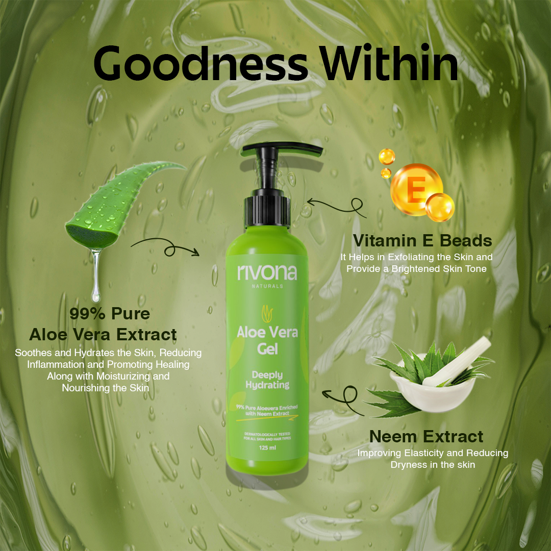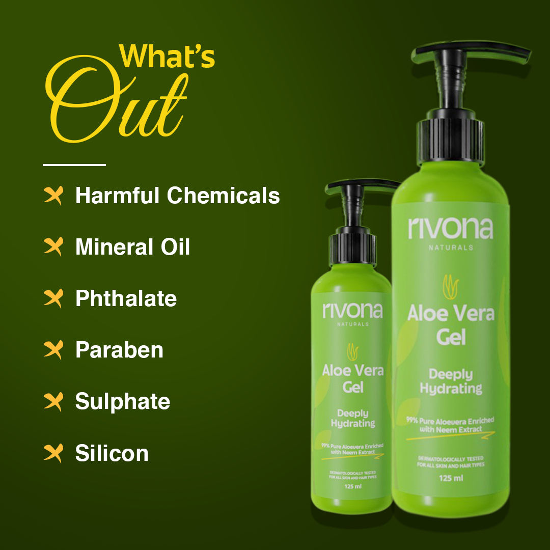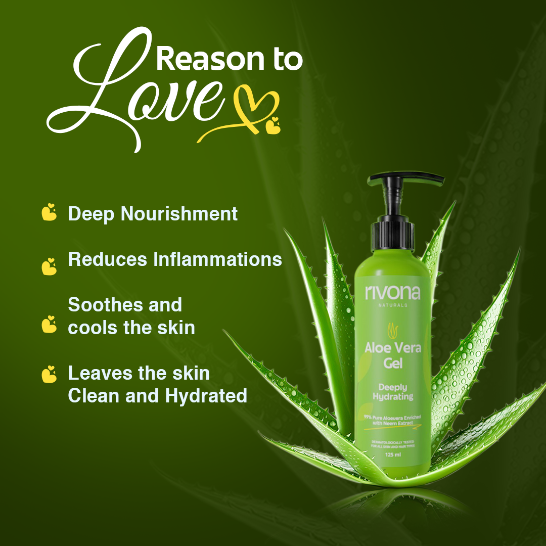 Rivona's 99% Aloe Vera Gel is a non-greasy multipurpose formulation with multiple beauty benefits for natural self-care. Try it now and experience the magic of Aloe Vera Gel!