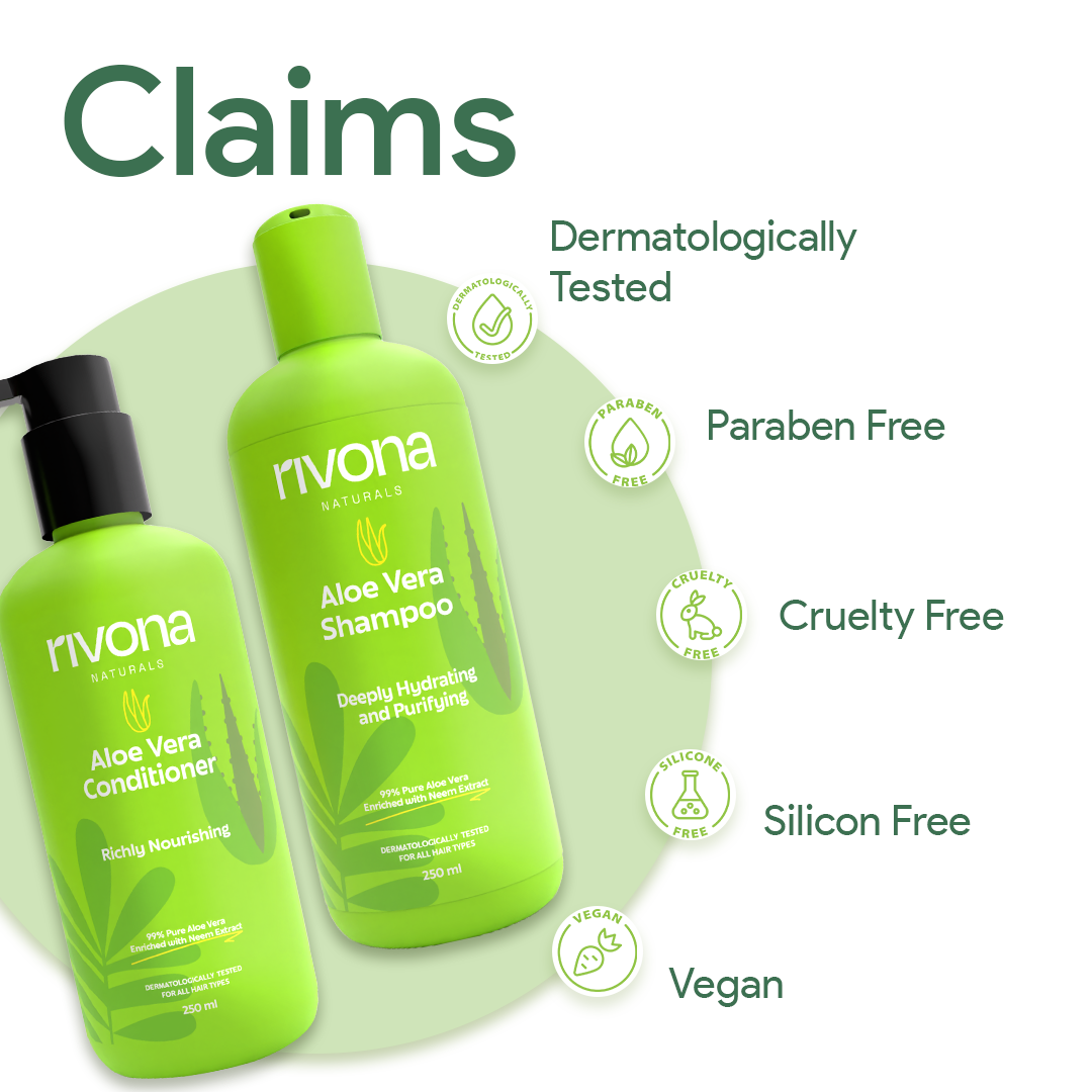 1) Rivona Naturals Aloe Vera Shampoo 250ml2) Rivona Naturals Aloe Vera Conditioner 250ml Cruelty-Free Paraben Free Silicon Free Vegan Phyhalate Free PH Balanced No Harmful Chemicals Derma Tested
