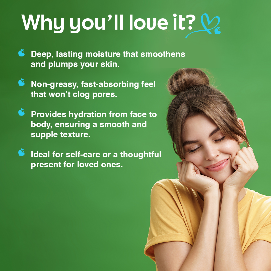 - Provides hydration from face to body, ensuring a smooth and supple texture.