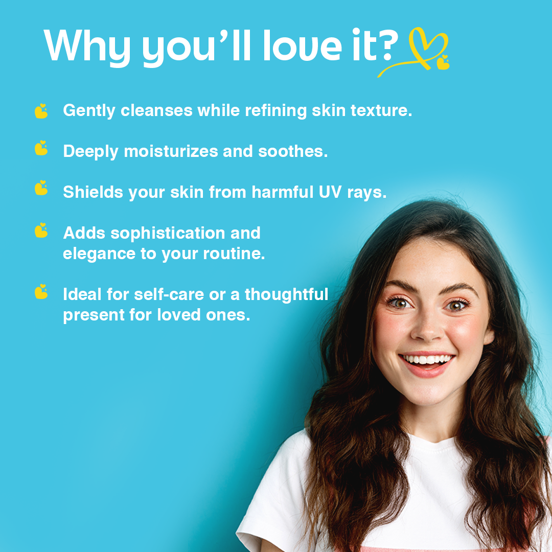 - Gently cleanses while refining skin texture.