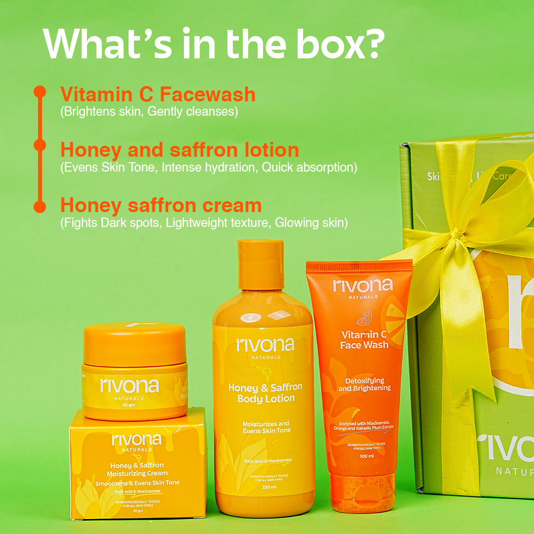 Wet your face and add a small amount of face wash to your hands.Lather it up with water. Massage the product for 1 to 2 minutes and wash it away. Use Honey & Saffron Cream to reduce hyperpigmentation and even tone skin. Honey & Saffron Body Lotion, apply generously after showering or whenever your skin feels dry, ideally daily.