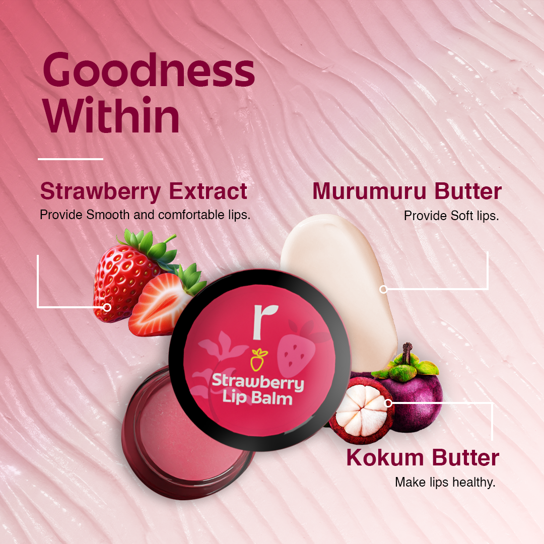 Rivona's Strawberry Lip Balm nourishes and hydrates your lips, leaving them smooth, soft and supple. Made with Avocado and Murmur butter, get ready to flaunt your pink lips.